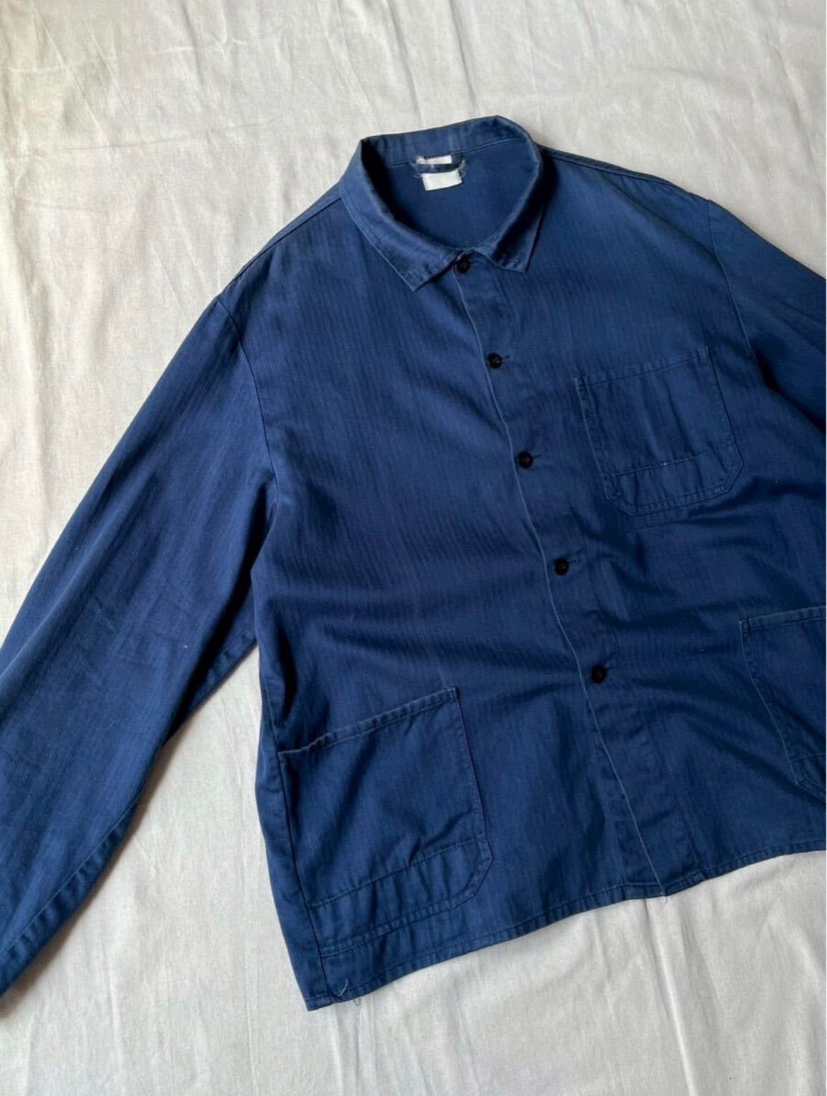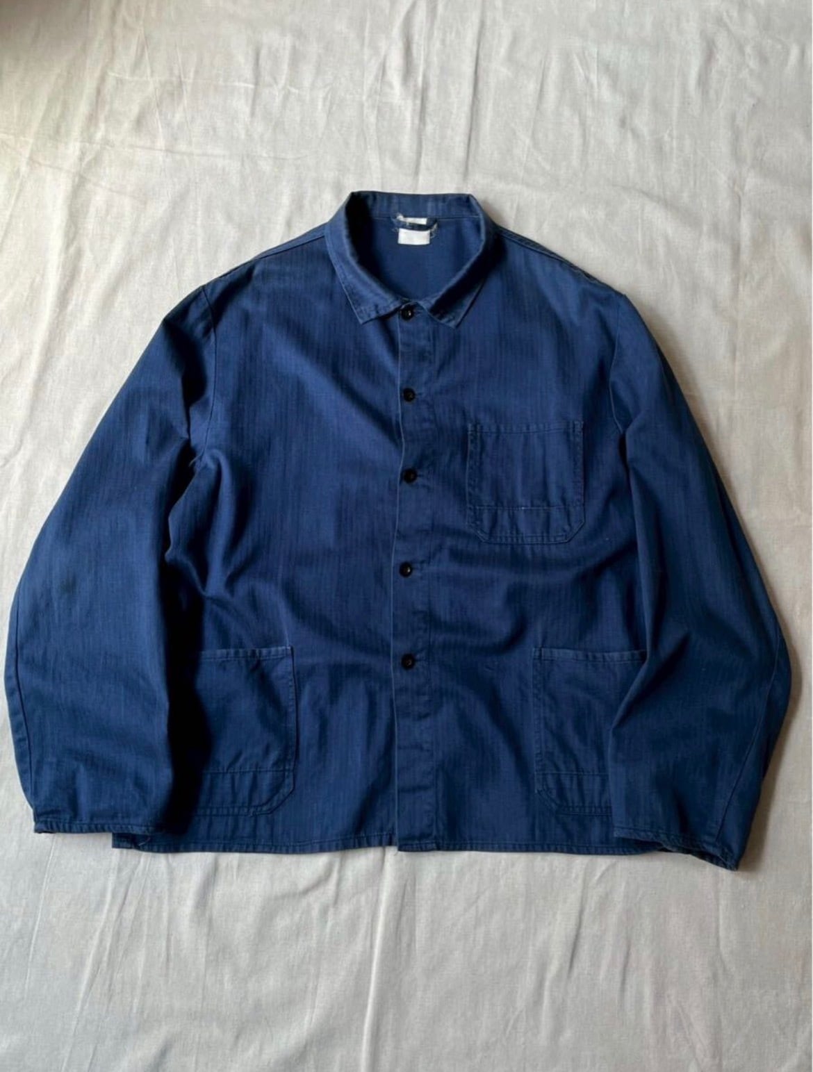 【ヘリンボーン】70s 80s Euro vintage ワーク ジャケット / ブルー コットン ユーロ ビンテージ O6-03033-9330