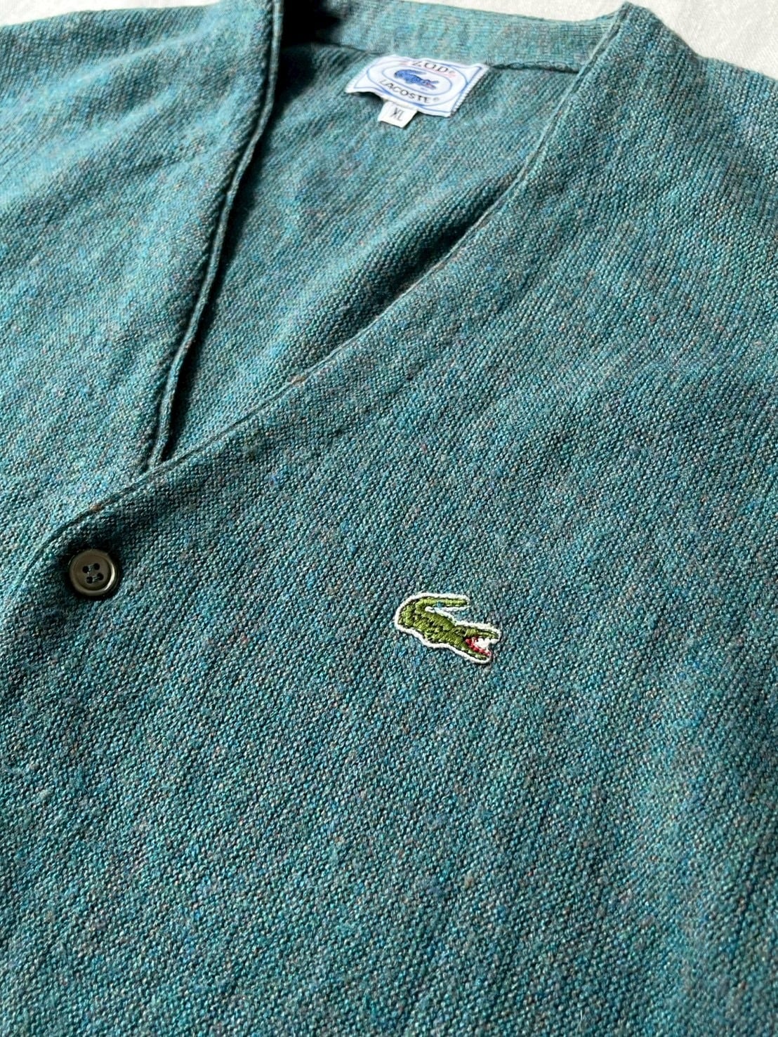 70s 80s IZOD LACOSTE アクリル ニット カーディガン / XL ターコイズ グリーン USA ビンテージ K6-04004-9277