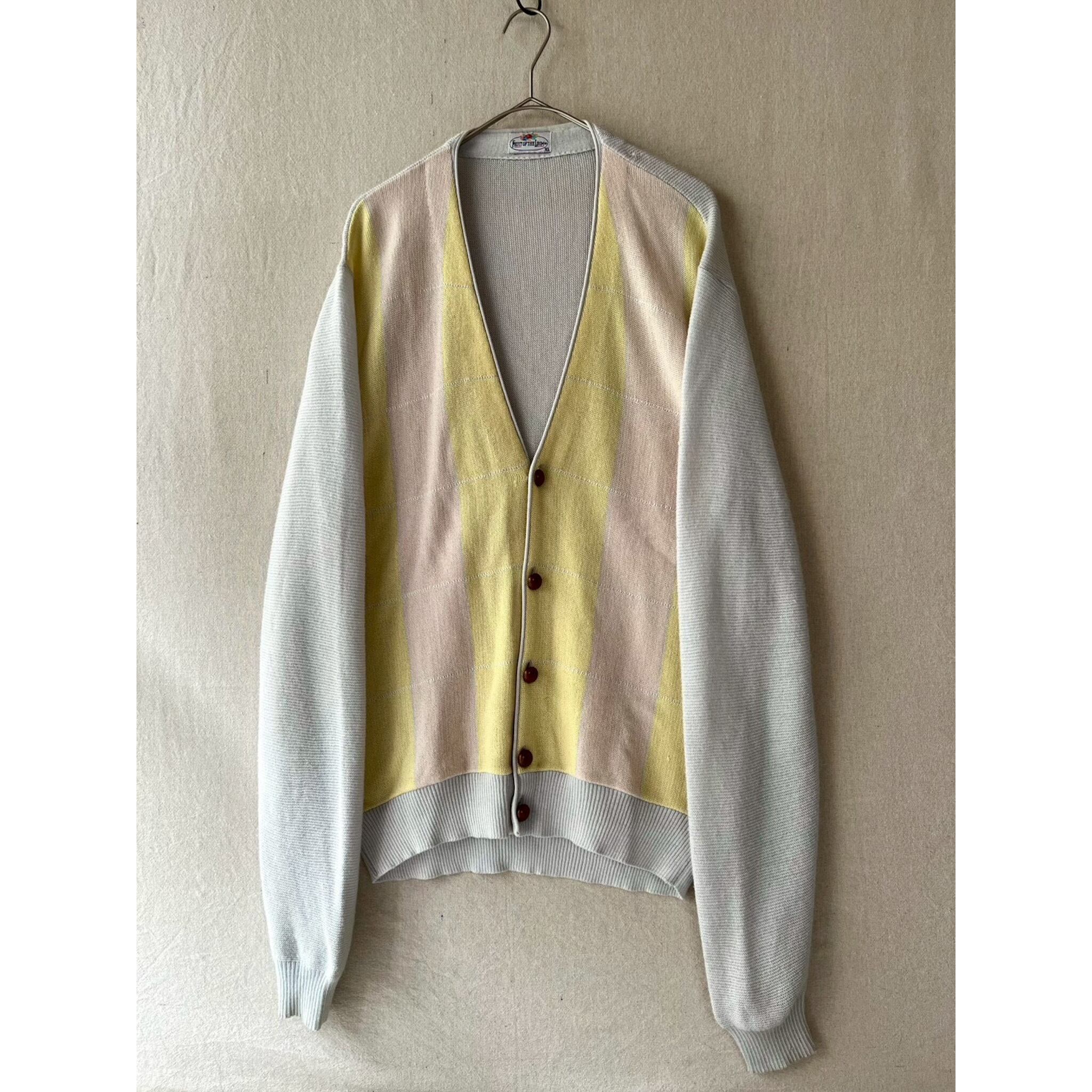60s 70s FRUIT OF THE LOOM ニット カーディガン / XL アクリル ウール イエロー ピンク グレー USA ビンテージ K6-04005-9435