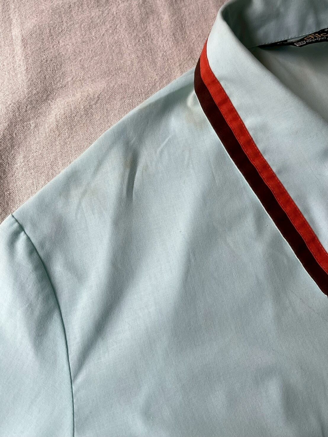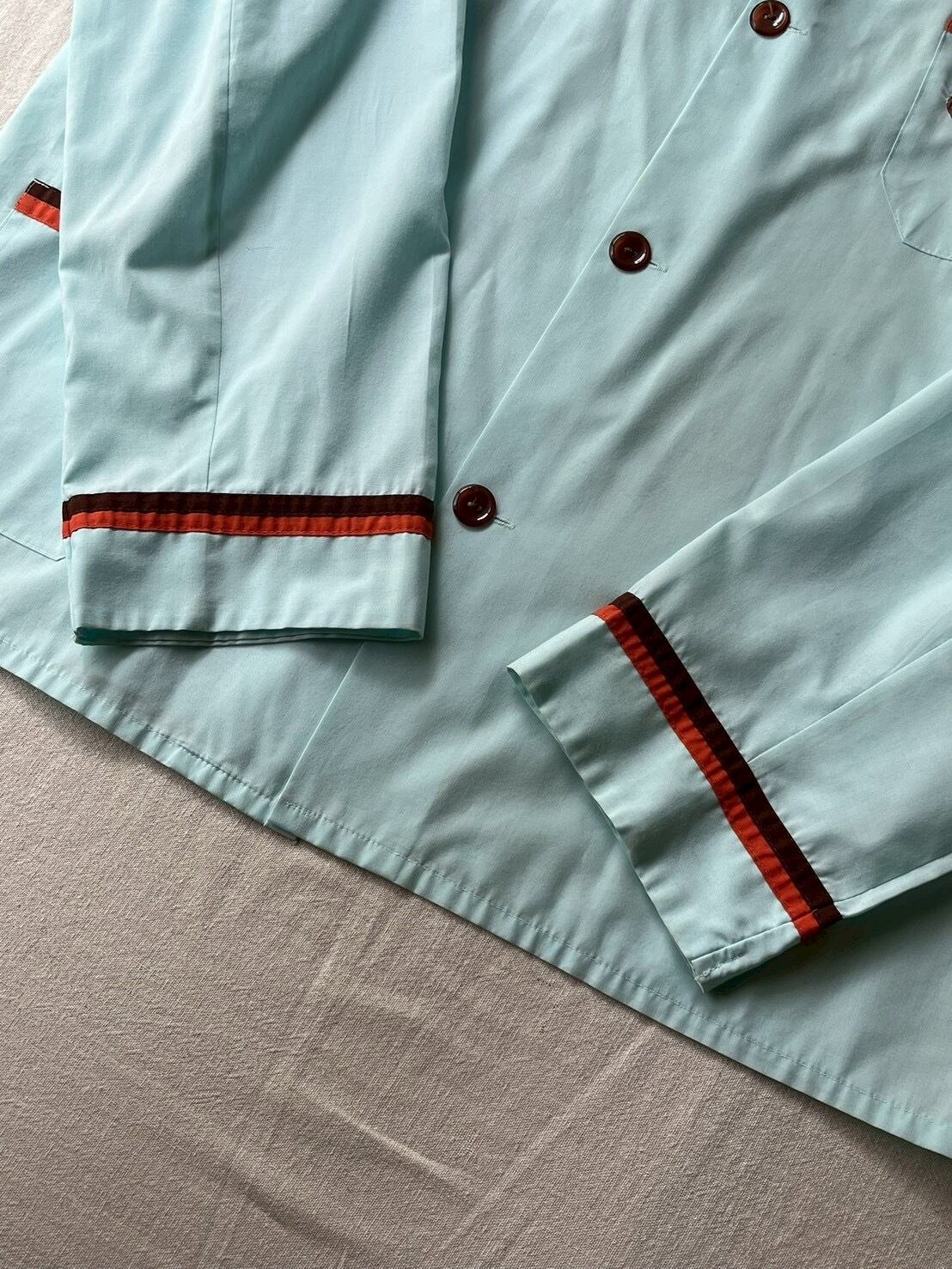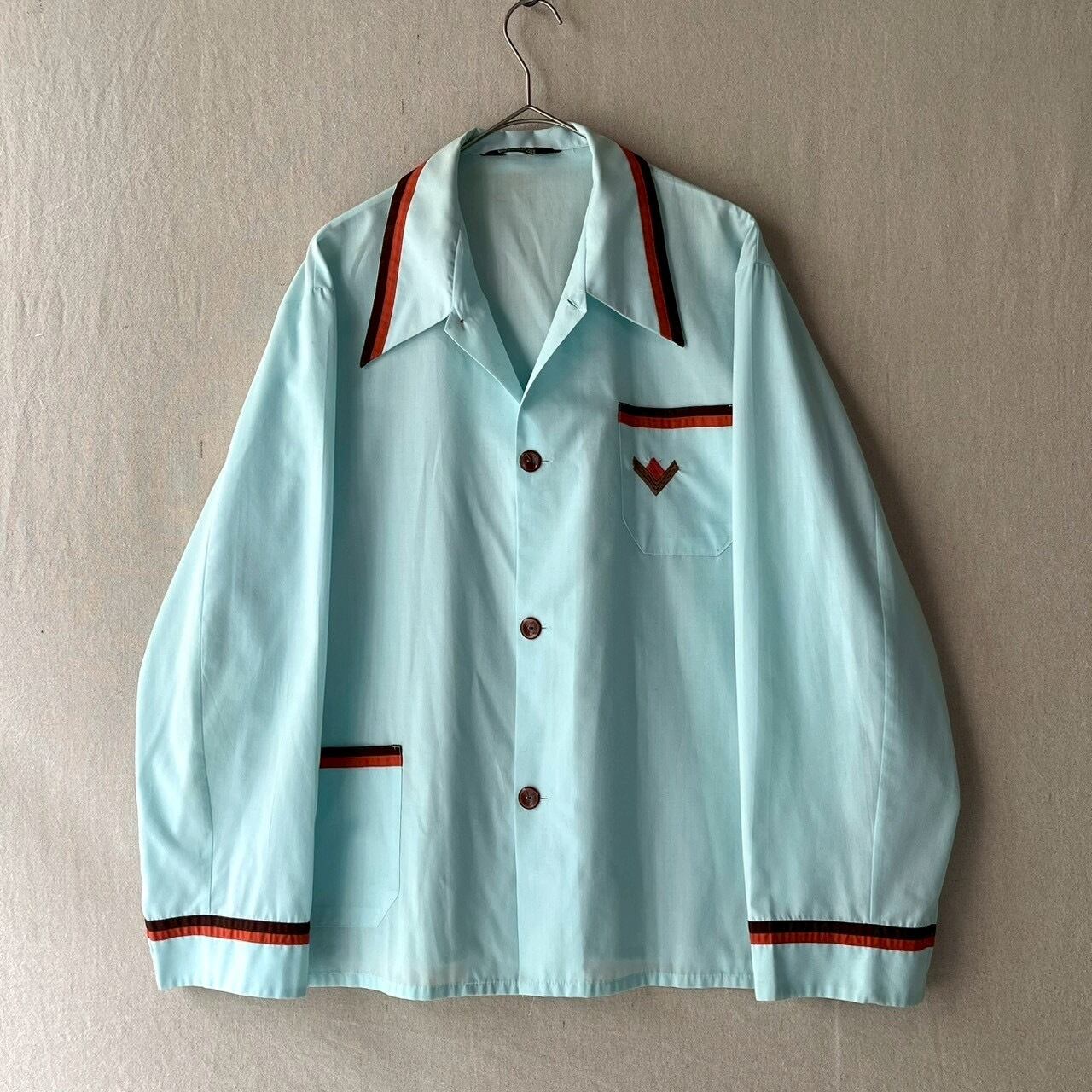 70s USA vintage パジャマ シャツ / 50 ポリ コットン ブルー オープンカラー ボックス ビンテージ T6-02094-9376