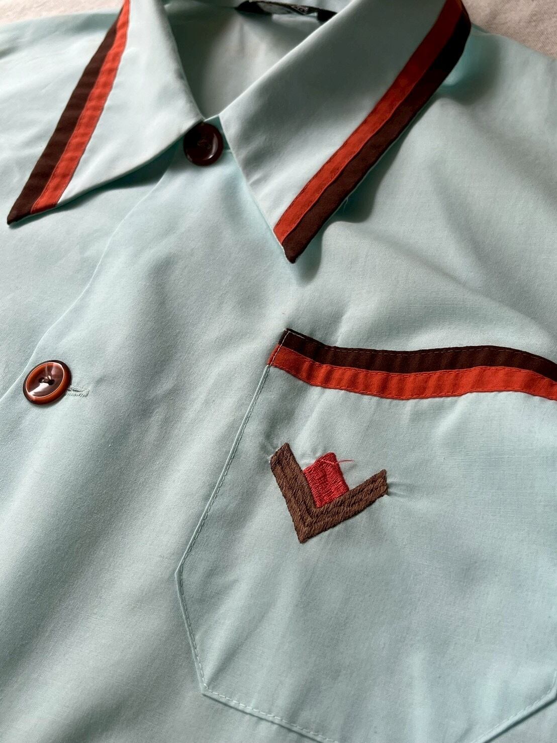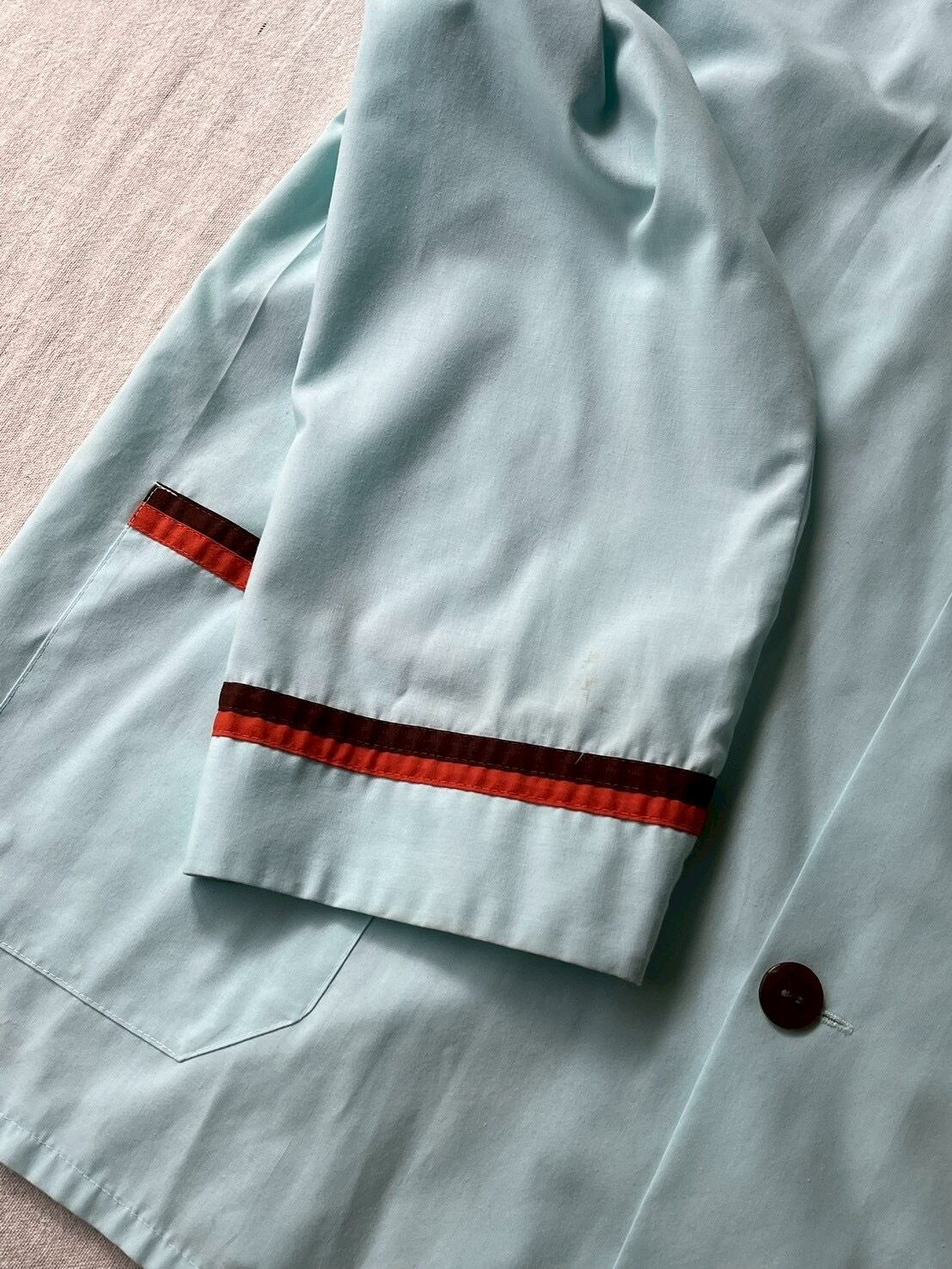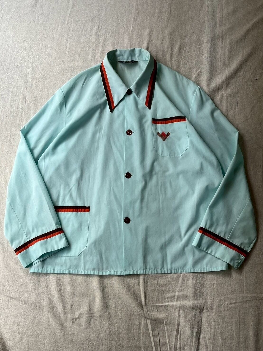70s USA vintage パジャマ シャツ / 50 ポリ コットン ブルー オープンカラー ボックス ビンテージ T6-02094-9376