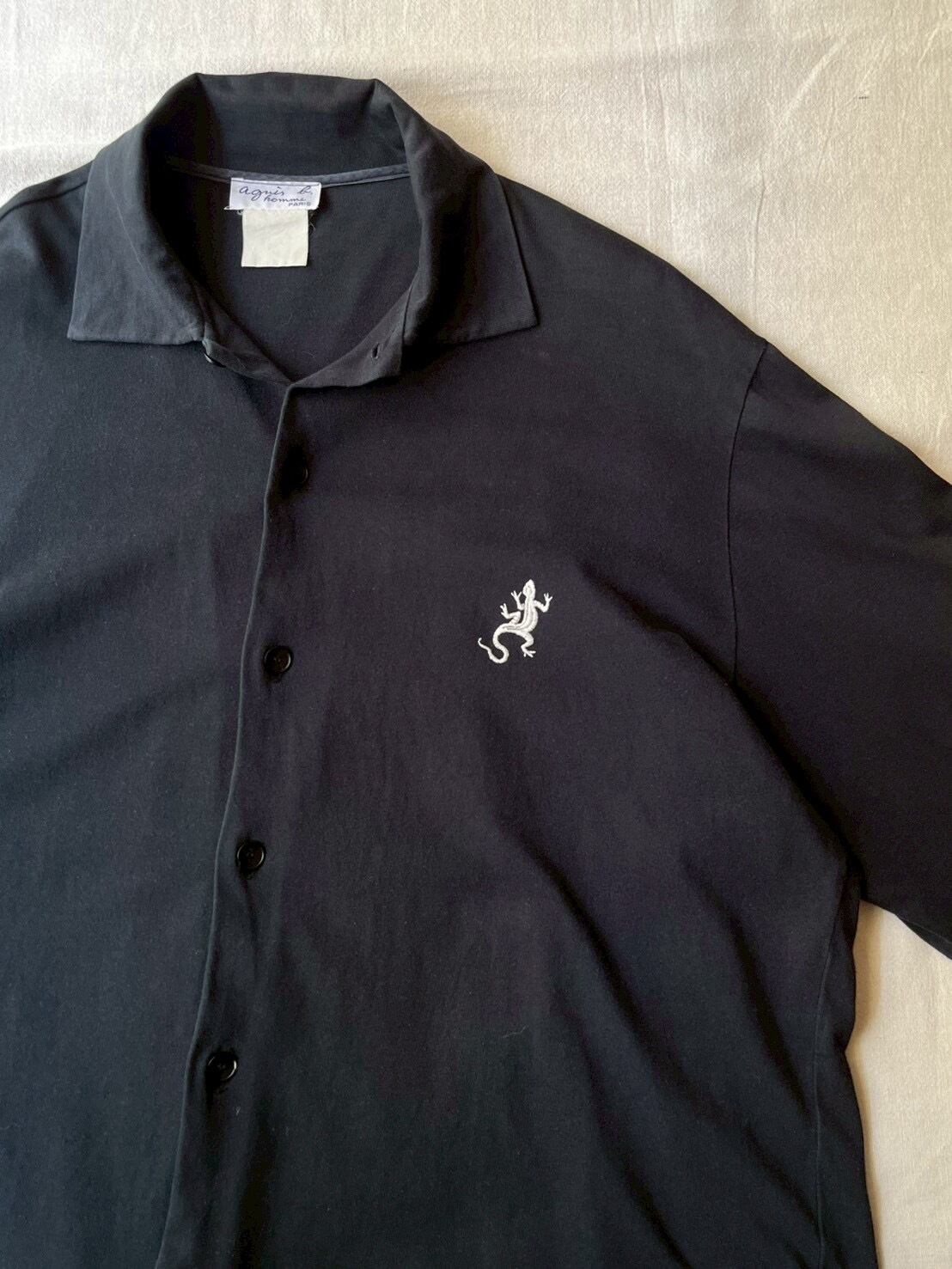 agnes b. homme シャツ / カットソー生地 コットン ブラック レザール トカゲ 刺繍 T5-11002-9319